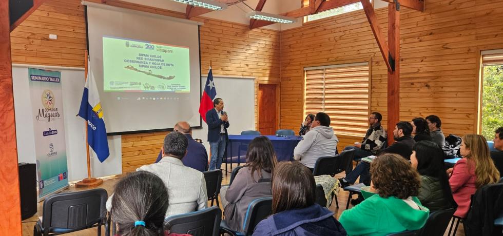 La segunda jornada incluyó una charla magistral del alcalde de la Municipalidad de Quinchao y presidente de la Asociación de Municipalidades Red Nacional de Comunas Mágicas de Chile, René Garcés Álvarez, quien expuso sobre el sello SIPAM (Sistema Importante del Patrimonio Agrícola Mundial), otorgado por la FAO en 2011.
